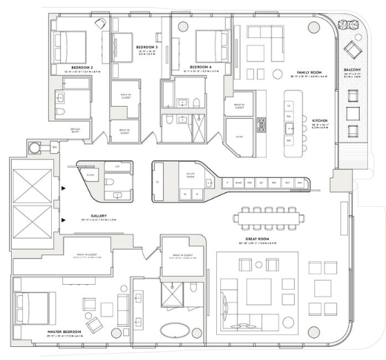 Just don’t forget about the extras: building maintenance fees for this type of apartment come in at $8,200 per month, not including taxes.